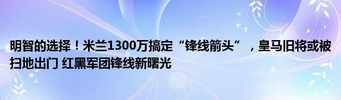 明智的选择!米兰1300万搞定“锋线箭头”,皇马旧将或被扫地出门 红黑军团锋线新曙光