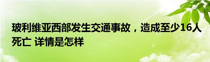【玻利维亚西部发生交通事故,造成至少16人死亡】大家可以一起来了解一下这是什么情况!
