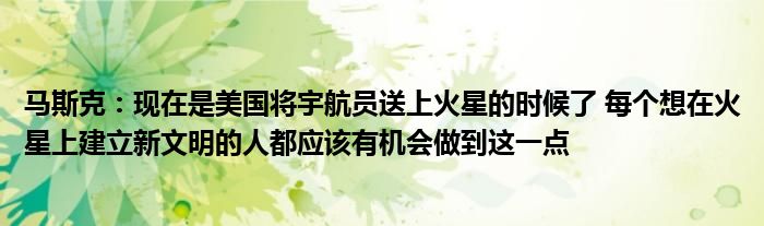 马斯克:现在是美国将宇航员送上火星的时候了 每个想在火星上建立新文明的人都应该有机会做到这一点