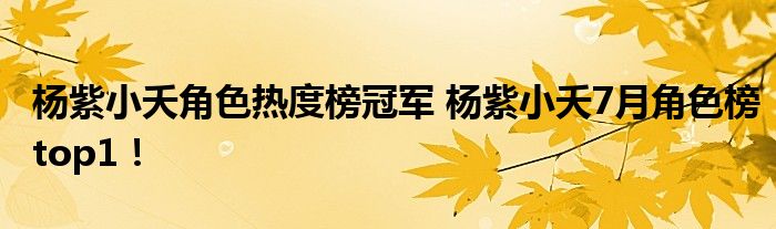 杨紫小夭角色热度榜冠军 杨紫小夭7月角色榜top1!