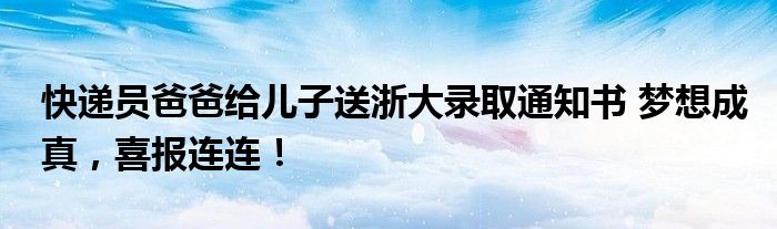 快递员爸爸给儿子送浙大录取通知书 梦想成真,喜报连连!