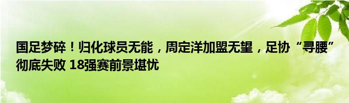 国足梦碎!归化球员无能,周定洋加盟无望,足协“寻腰”彻底失败 18强赛前景堪忧