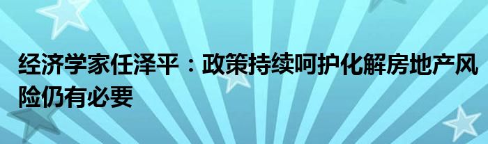 经济学家任泽平:政策持续呵护化解房地产风险仍有必要