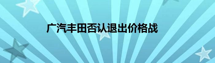 广汽丰田否认退出价格战