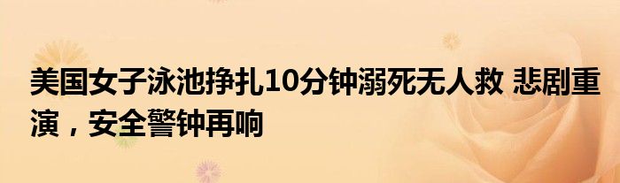 美国女子泳池挣扎10分钟溺死无人救 悲剧重演,安全警钟再响
