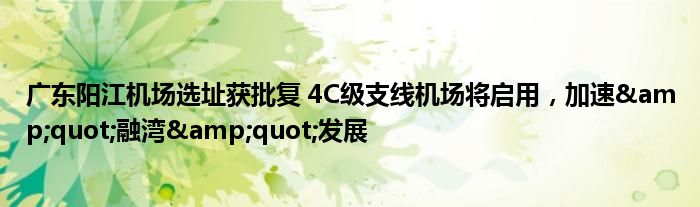 广东阳江机场选址获批复 4C级支线机场将启用,加速"融湾"发展