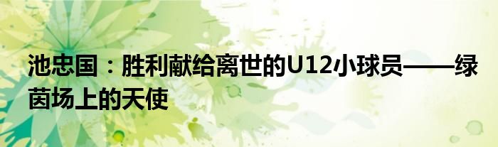 池忠国:胜利献给离世的U12小球员——绿茵场上的天使
