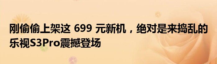 刚偷偷上架这 699 元新机,绝对是来捣乱的 乐视S3Pro震撼登场