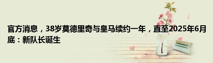 官方消息,38岁莫德里奇与皇马续约一年,直至2025年6月底:新队长诞生