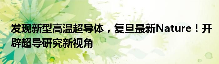发现新型高温超导体,复旦最新Nature!开辟超导研究新视角