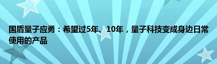 国盾量子应勇:希望过5年、10年,量子科技变成身边日常使用的产品