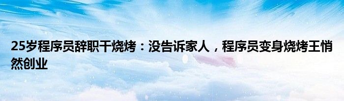 25岁程序员辞职干烧烤:没告诉家人,程序员变身烧烤王悄然创业
