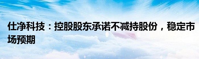 仕净科技:控股股东承诺不减持股份,稳定市场预期