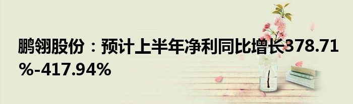 鹏翎股份:预计上半年净利同比增长378.71%-417.94%