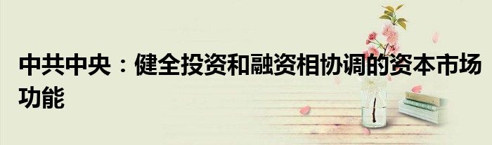 据新华社,中共中央关于进一步全面深化改革,推进中国式现代化的决定提出,健全投资和融资相协调的资本市场功能,防风险、强监管,促进资本市场健康稳定发展。支持长期资金入市。提高上市公司质量,强化上市公司监管和退市制度。建立增强资本市场内在稳定性长效机制。完善大股东、实际控制人行为规范约束机制。完善上市公司分红激励约束机制。健全投资者保护机制。推动区域性股权市场规则对接、标准统一。
