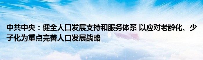 中共中央:健全人口发展支持和服务体系 以应对老龄化、少子化为重点完善人口发展战略