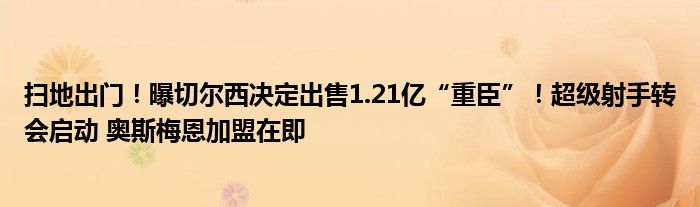 扫地出门!曝切尔西决定出售1.21亿“重臣”!超级射手转会启动 奥斯梅恩加盟在即