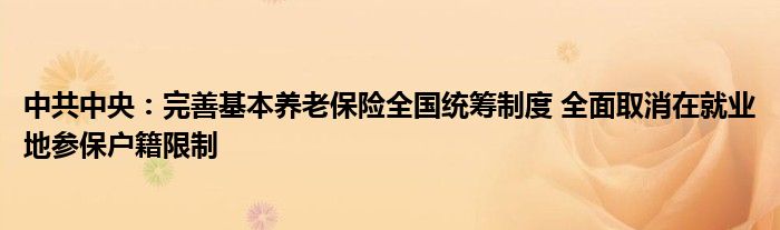 中共中央:完善基本养老保险全国统筹制度 全面取消在就业地参保户籍限制