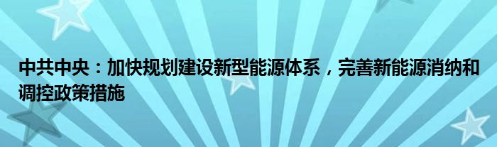 中共中央:加快规划建设新型能源体系,完善新能源消纳和调控政策措施