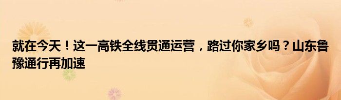 就在今天!这一高铁全线贯通运营,路过你家乡吗?山东鲁豫通行再加速