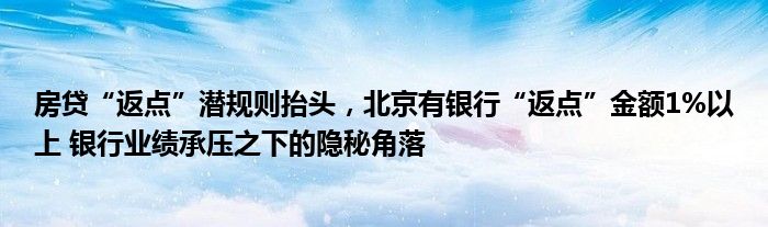 房贷“返点”潜规则抬头,北京有银行“返点”金额1%以上 银行业绩承压之下的隐秘角落