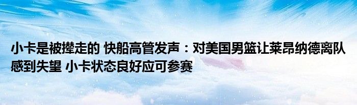 小卡是被撵走的 快船高管发声:对美国男篮让莱昂纳德离队感到失望 小卡状态良好应可参赛