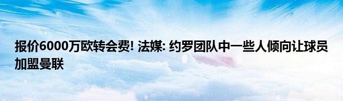 报价6000万欧转会费! 法媒: 约罗团队中一些人倾向让球员加盟曼联