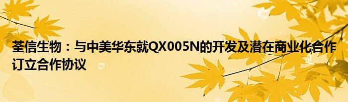 荃信生物:与中美华东就QX005N的开发及潜在商业化合作订立合作协议