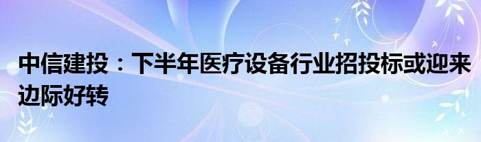 中信建投:下半年医疗设备行业招投标或迎来边际好转