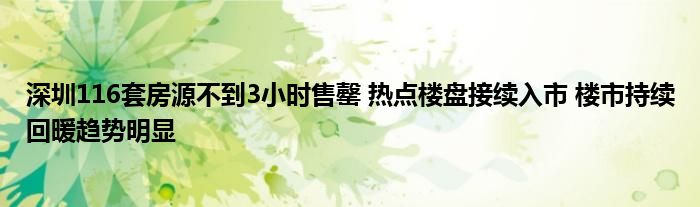 深圳116套房源不到3小时售罄 热点楼盘接续入市 楼市持续回暖趋势明显