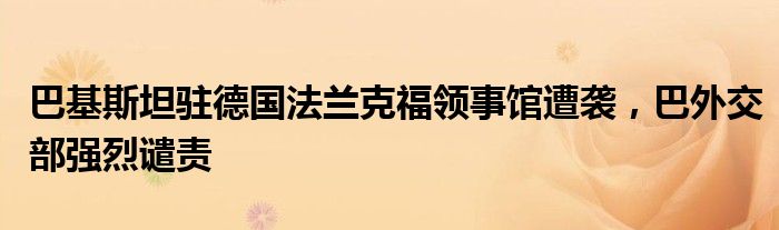 巴基斯坦驻德国法兰克福领事馆遭袭,巴外交部强烈谴责