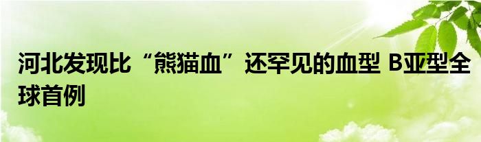 河北发现比“熊猫血”还罕见的血型 B亚型全球首例