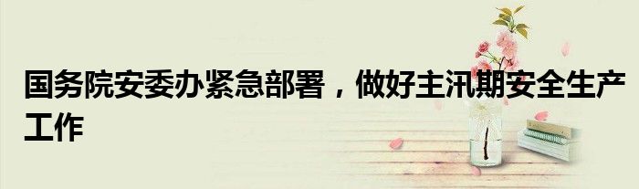 国务院安委办紧急部署,做好主汛期安全生产工作