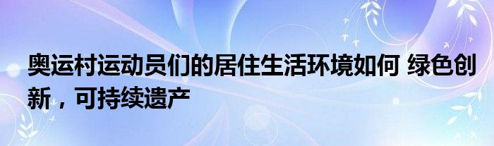 奥运村运动员们的居住生活环境如何 绿色创新,可持续遗产