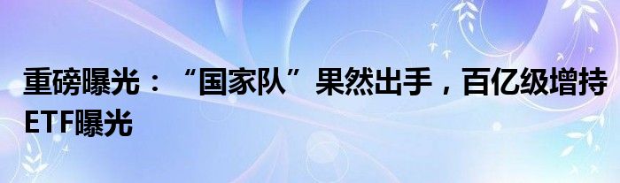 重磅曝光:“国家队”果然出手,百亿级增持ETF曝光