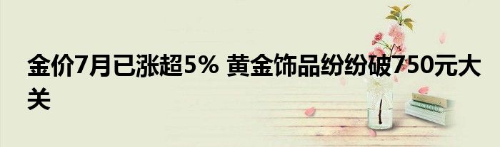 金价7月已涨超5% 黄金饰品纷纷破750元大关
