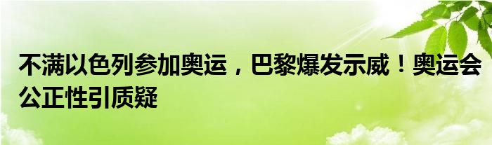 不满以色列参加奥运,巴黎爆发示威!奥运会公正性引质疑