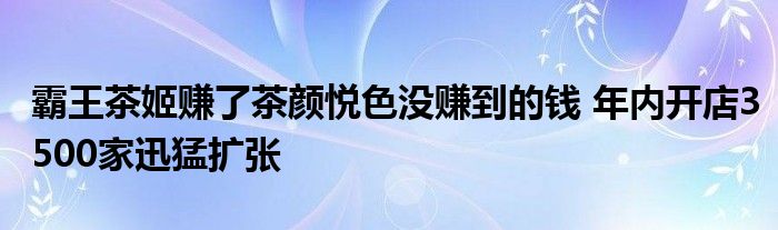 霸王茶姬赚了茶颜悦色没赚到的钱 年内开店3500家迅猛扩张