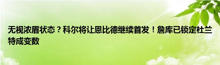 无视浓眉状态?科尔将让恩比德继续首发!詹库已锁定杜兰特成变数
