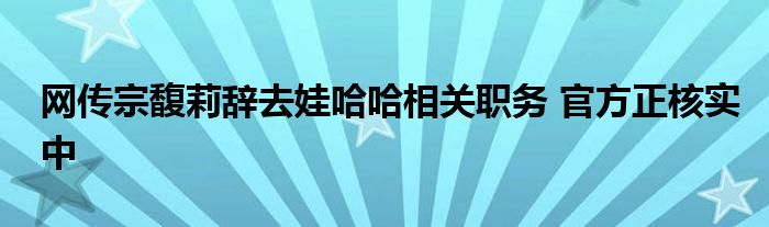 网传宗馥莉辞去娃哈哈相关职务 官方正核实中