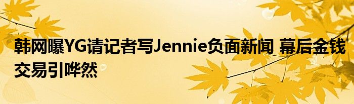 韩网曝YG请记者写Jennie负面新闻 幕后金钱交易引哗然