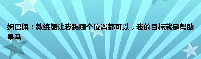 姆巴佩:教练想让我踢哪个位置都可以,我的目标就是帮助皇马