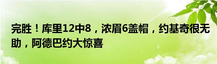 完胜!库里12中8,浓眉6盖帽,约基奇很无助,阿德巴约大惊喜