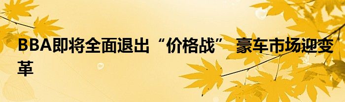 BBA即将全面退出“价格战”