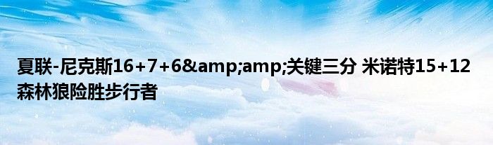 夏联-尼克斯16+7+6&关键三分 米诺特15+12 森林狼险胜步行者