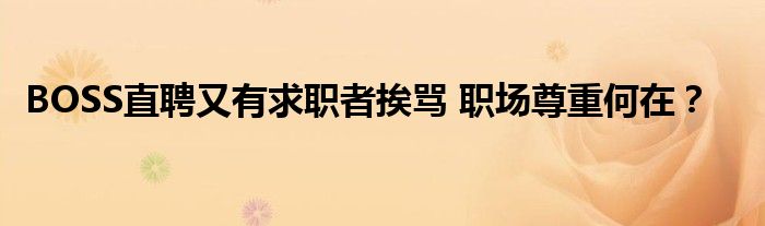 BOSS直聘又有求职者挨骂 职场尊重何在?