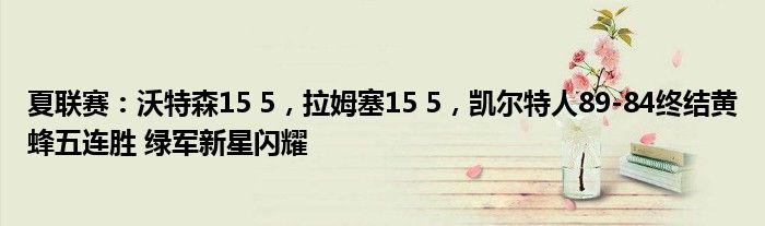 夏联赛:沃特森15 5,拉姆塞15 5,凯尔特人89-84终结黄蜂五连胜 绿军新星闪耀