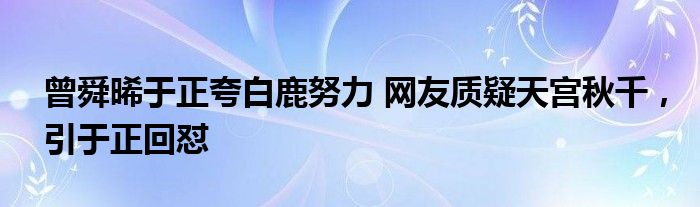 曾舜晞于正夸白鹿努力 网友质疑天宫秋千,引于正回怼