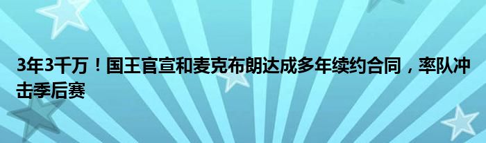 3年3千万!国王官宣和麦克布朗达成多年续约合同,率队冲击季后赛