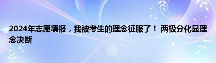 2024年志愿填报,我被考生的理念征服了! 两极分化显理念决断